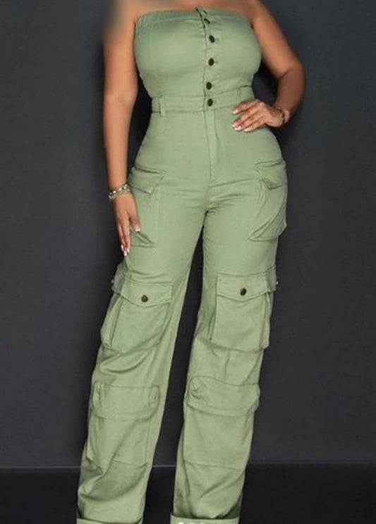 Casual Cargo Denim Jumpsuit for Women, Elastic Stretch Multi Pockets Button Down Straight Leg Jeans Jumpsuits