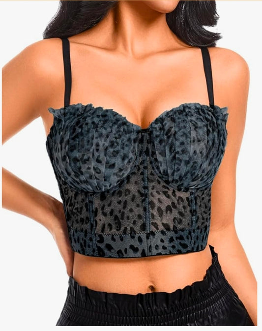 Cheetah Corset Tops, Sexy Mesh Bustier, Going Out Outfits, Animal Print Crop Tops For Women Leopard Overbust Bra