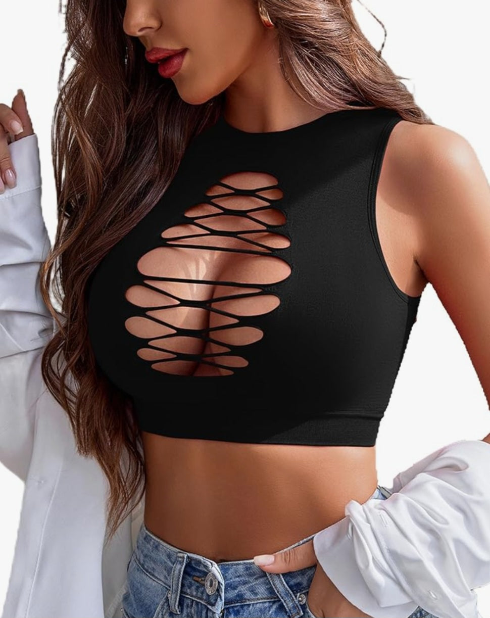 Women's Fishnet Top Sexy Cut Out Crop Short Hollow Out Cropped Tank Top